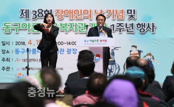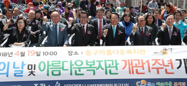 대전 동구는 19일 동구아름다운복지관에서 각계 내빈, 장애인, 자원봉사자 등 1300여 명이 참석한 가운데 제38회 장애인의 날 및 동구아름다운복지관 개관 1주년 기념행사를 개최했다.