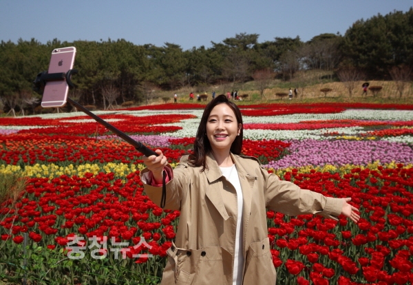 지난 20일 안면도 코리아플라워파크 태안 세계튤립축제장에서 진행된 ‘태안TV 라이브’ 모습.