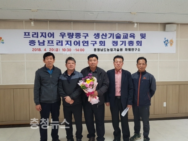 충남 청양군에서 프리지어 재배로 성공한 양승보(61)씨가 충남 프리지어 연구회 회장으로 취임했다.