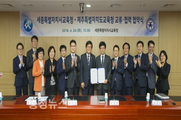 세종시교육청(교육감 최교진)과 제주도교육청(교육감 이석문)은 24일 세종시교육청 3층 상황실에서 교육 협력 업무협약을 체결했다.