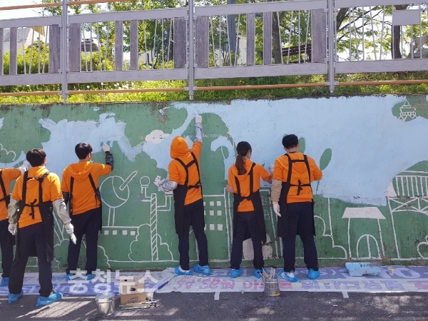 대전 중구 석교동 행정복지센터(동장 김태수)는 25일 CJ그룹의 봉사로 벽화그리기 작업을 실시했다고 밝혔다.