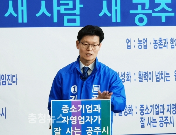 김 후보는모두발언을 통해 “현재 공주시는 장기간의 지역경제 침체와 인구유출로 위기에 처해있다”고 진단하면서, “중소기업과 자영업자가 잘 사는 공주시를 만들기 위하여 전통시장과 지역업체를 보호하고 사회적 경제와 기업하기 좋은 환경을 만들겠다”고 밝혔다.