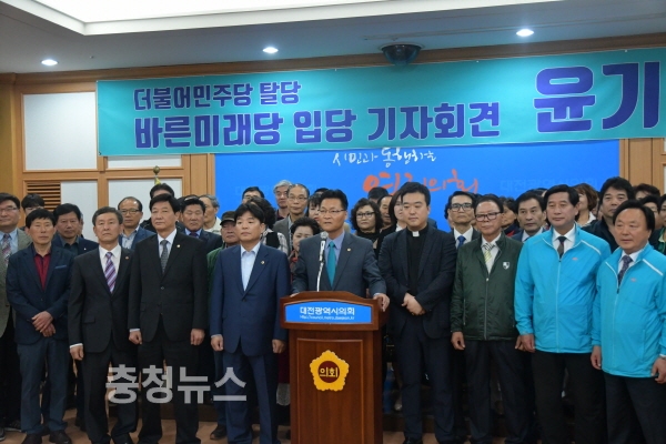 윤 의원은 26일 대전시의회에서 기자회견을 열고 “지역의 현실을 외면하고 대통령의 지지율에 취해 아무나 당선될 수 있다는 자아도취에 빠졌다”며 “원칙과 상식조차도 지키지 않는 시당 지도부와 지역위원장의 갑질과 전횡은 더 이상의 인내도 신뢰도 할 수 없게 만들었다”고 성토했다.