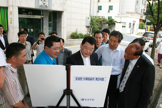 박성효 대전시장은 24일 오후 2시 수해상습지인 유성천 유성구청 앞 어은교-장대동 구암교 구간 개선사업현장을 찾아 주민들의 불편없는 안전공사를 당부했다.
