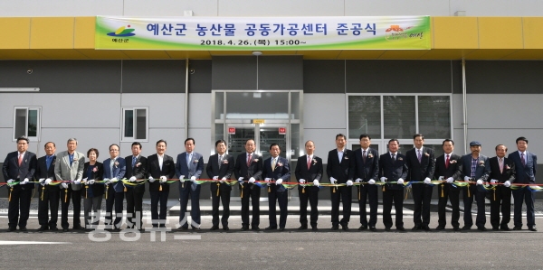 충남 예산군은 지난 26일 농산물의 부가가치 향상으로 농가소득 제고와 창업지원 등을 위해 건립한 농산물 공동가공센터(신암면 종경리 281-83)의 준공식을 가졌다.