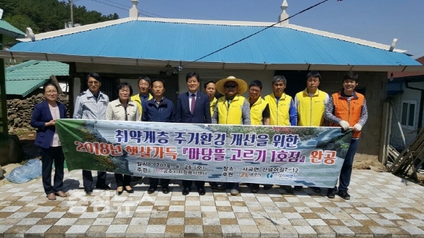 충남 공주시가 저소득 취약계층 주거환경 개선을 위해 2018 햇살가득 마당뜰 고르기 사업을 2018년 새시책으로 추진하고 있는 가운데 마당뜰 고르기 1호점이 탄생했다.
