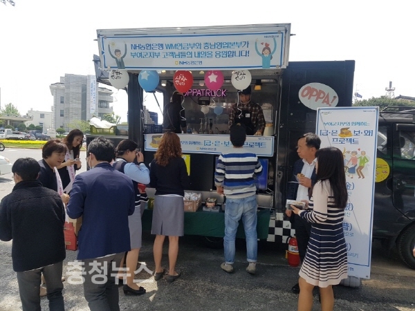 이번 행사에서는 지역 청년이 창업해 운영하는 푸드트럭이 직접 농협은행 부여군지부에 방문해 내점고객을 대상으로 커피(茶)및 간식을 2~3시간 동안 무료로 제공한다.