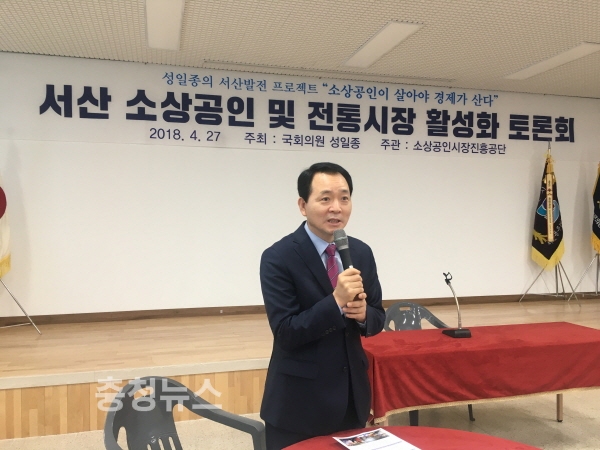 자유한국당 소상공인특별위원장을 맡고 있는 성일종 의원(충남 서산·태안, 자유한국당)이 27일 서산동부시장 상인회 회의실과 태안군청 중회의실에서 소상공인 및 전통시장 활성화 토론회를 개최했다.