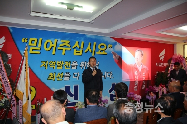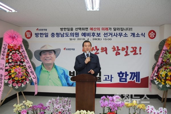 자유한국당 사무총장이자 이번 6.13 지방선거 총괄기획단 단장인 홍문표 의원이 지난 28일 한국당 방한일 충남도의원 후보와 신일섭 예산군의원 후보 선거사무소 개소식에 잇따라 방문했다.