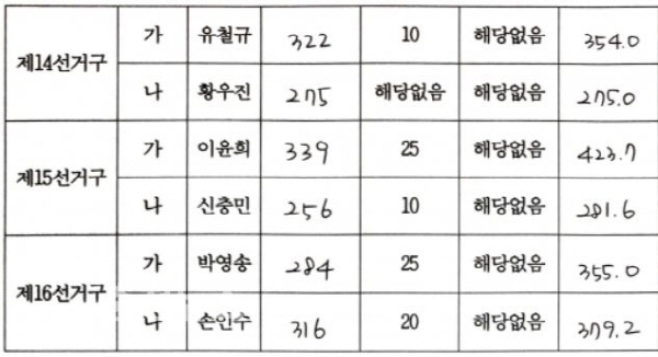 특히, 제16선거구에서는 손인수 후보가 박영송 현역 시의원과 맞대결을 펼쳐 승리하면서 최대 이변을 낳았다.