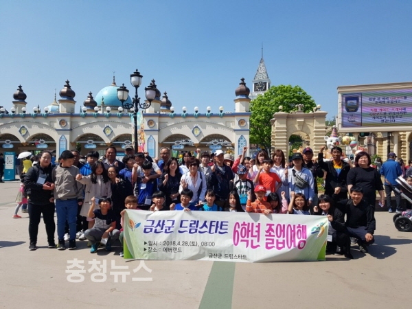 충남 금산군드림스타트는 드림스타트의 서비스가 종결되는 6학년 아동을 대상으로 용인 에버랜드로 부모님과 함께하는 졸업여행을 다녀왔다.
