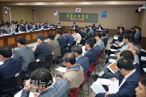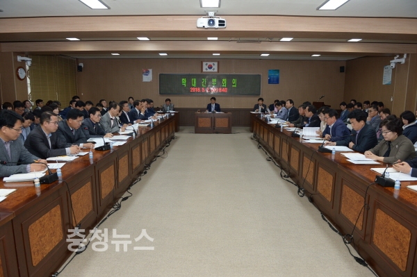한편, 이번 확대간부회의는 김석환 홍성군수가 6·13 지방선거 출마를 위한 예비후보자로 등록함에 따라 이용록 부군수 권한대행체제로 전환한 후 간부 공무원들과 군정 현안을 공유하기 위해 마련됐다.