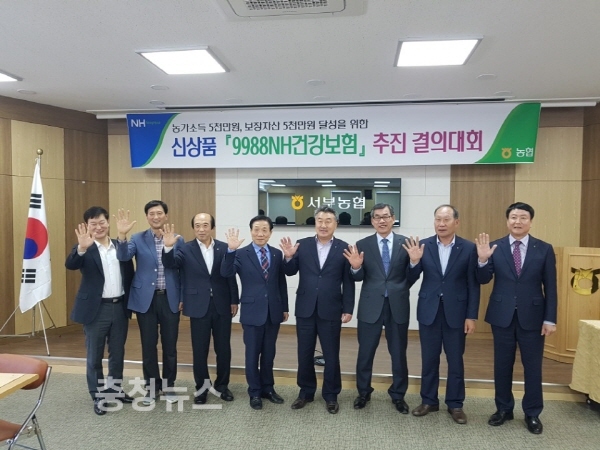 이에 충남농협 조합장들은 홍성 서부농협 회의실에서 농가소득 5천만원, 보장자산 5천만원 달성을 위한「9988NH건강보험(갱신형,비갱신형,무배당)」추진 결의대회를 가졌다고 지난 1일 밝혔다.