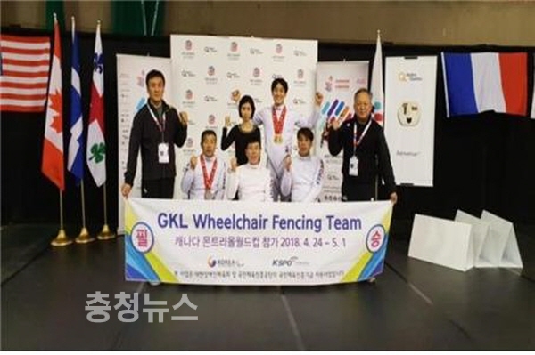 GKL휠체어펜싱팀은 지난달 27일부터 29일까지 케나다 몬트리올 올림픽체육관에서 열린 'IWAS 2018 몬트리올 휠체어펜싱 월드컵'에 출전해 금메달 1개, 은메달 1개, 동메달 2개를 획득했다.
