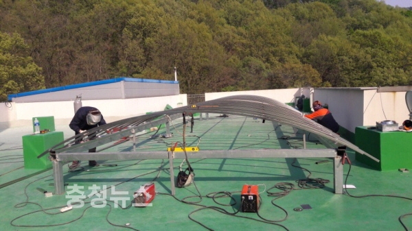 충남 천안시가 지난해 한국산림복지진흥원이 주최한 나눔숲 공모사업에서 선정돼 1억 4000만 원의 복권기금인 녹색자금을 지원받아 ‘평안의 집’에 옥상녹화사업을 진행하고 있다.