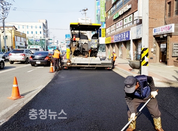 공사에 들어간 문화회관 앞(1km), 서령초~간월호관광도로(1.7km) 등 12개 노선 11km구간 아스콘 덧씌우기도 이달 말까지 완료된다.