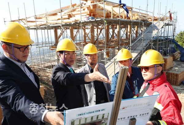 한현택 동구청장은 4일 대전의 명산 식장산에 건립되고 있는 식장산 전망대 공사현장을 찾아 사업 진행 상황을 점검하고 관계자들에게 현장 안전 관리에 철저를 기할 것을 당부했다.