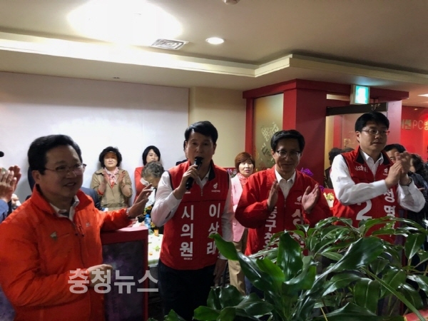 이상래 자유한국당 대전 시의원(동구 제2선거구) 후보가 3일 용운동 선거사무소 개소식을 열고 본격적인 선거 운동에 돌입했다. (왼쪽부터) 이장우 의원, 이상래 시의원(동구2) 후보, 성선제 동구청장 후보, 정명국 시의원(동구3) 후보 (제공 : 이상래 캠프) 개소식 현장 (제공 : 이상래 캠프) 저작권자 © 충청뉴스 무단전재 및 재배포 금지 김용우 기자 다른기사 보기 기사가 마음에 드셨나요? 충청뉴스 좋은 기사 후원하기 1,000원 3,000원 5,000원 10,000원 30,000원 50,000원 직접입력 비회원 약관동의하기 ※ 소중한 후원금은 더 좋은 기사를 만드는데 쓰겠습니다.
