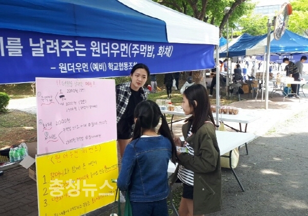 학생들이 시민들을 대상으로 사회적경제에 대한 홍보 진행 / 충청뉴스 최형순 기자