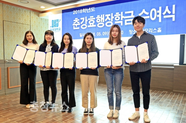 단국대학교(총장 장호성)가 9일 천안캠퍼스 학생회관에서 남다른 효행으로 주변의 귀감이 된 재학생들에게 ‘춘강효행장학금’을 전달한다.