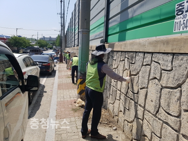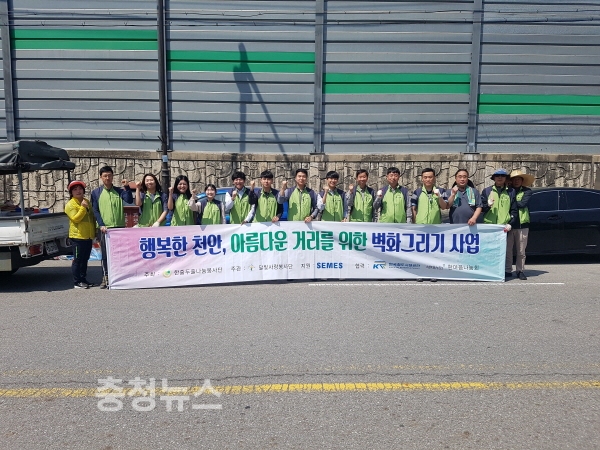 한국철도시설공단 충청본부(본부장 장봉희)는 9일 충남 천안지하차도에서 한줄두줄나눔봉사단 등과 함께 방음벽에 벽화를 그려 철로변 환경개선활동에 나섰다고 밝혔다.
