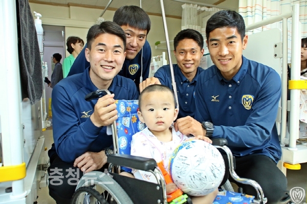 아산무궁화프로축구단(대표이사 박성관) 선수단이 5월 가정의달을 맞아 병상에 있는 환아를 위해 위문에 나섰다.
