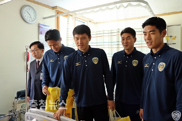 아산무궁화 선수단은 9일 오전 ‘아산충무병원 어린이 병동’을 방문해 따뜻해진 날씨에도 병동에 있어야 하는 어린이들에게 직접 사인볼을 증정하고 함께 이야기를 나누며 즐거운 시간을 보내기 위해 구단의 협력 병원인 아산충무병원과 함께 행사를 마련했다.