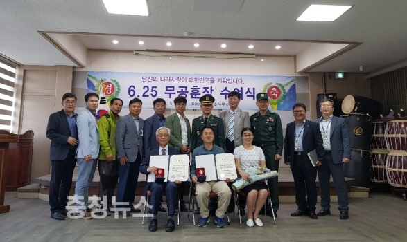 충남 금산군 금산읍사무소는(읍장 길성용)는 지난 9일 6․25 전쟁 참전용사인 故강성재 하사의 자녀 강충효(72세)씨와 故이명철 일병의 자녀 이경록(51세)씨에게화랑무공훈장을 전수했다.