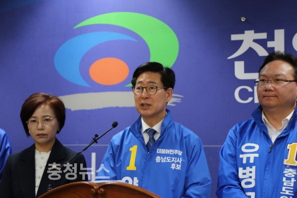 양승조 후보는 10일 천안시청에서 기자회견을 열고 “여야 협상 결렬로 인해 국회 파행이 계속되고 있다”며 “ 6.13 지방선거와 동시에 치러질 재보궐 선거가 불투명한 상황으로 치닫고 있다”며 깊은 우려를 표명했다.