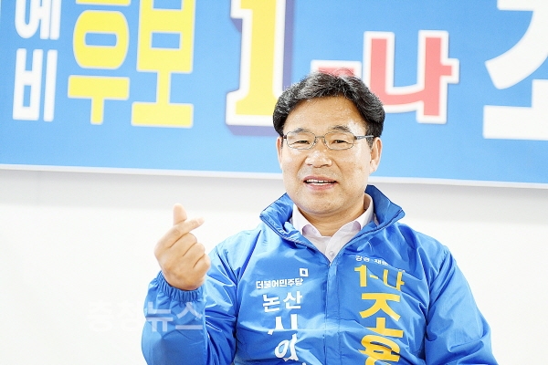 조 후보는 논산시의원 ‘다’선거구(연무, 강경, 채운)에 출마해 시의원에 입성, 지역 발전과 대변인 역할을 수행하겠다는 각오다.