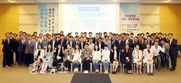 한국철도시설공단은 지난 10일 대전컨벤션센터(대전시 유성구 소재)에서 국유재산 등 철도자산 운영 업무를 수행하는 임직원 80여명이 참석한 가운데 자산운영단 비전과 전략수립을 위한 워크숍을 개최했다고 밝혔다.