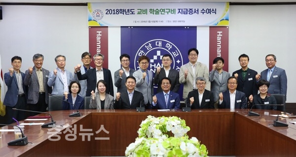 앞서 한남대는 지난 10일 본관 대회의실에서 2018학년도 교비 학술연구비 지급증서 수여식을 열었다.