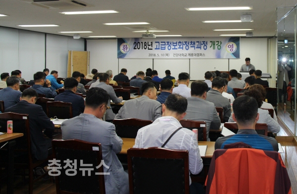 건양대(총장 정연주) 평생교육대학(원장 이진)은 지난 10일 현역 장성 및 영관급 장교 100여명이 참석한 가운데 건양대 계룡학습관에서 '2018년 육군 고급정보화 정책과정' 개강식을 개최했다.