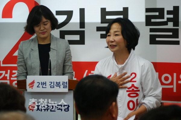 송아영 세종시장 후보는 "김복렬 후보는 4년동안 여성으로서 최고의 의정활동을 펼쳐왔고, 앞으로도 최고의 의정활동을 할수 있으리라 믿는다면서 지지를 호소"하며 주민들께 큰절을 올려 환호를 받았다.