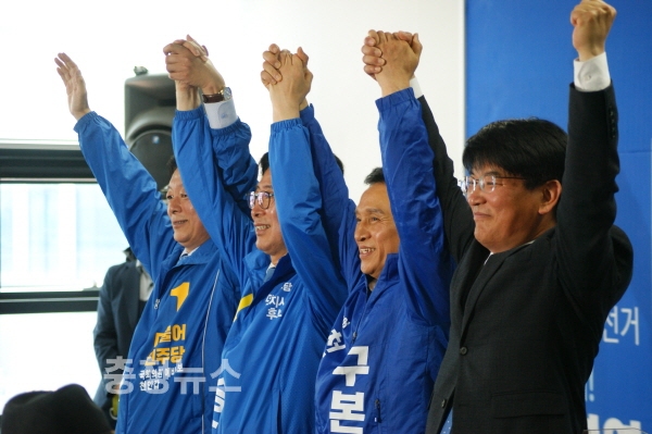 이규희 천안갑 후보, 양승조 도지사 후보, 구본영 천안시장 후보, 박완주 국회의원 필승 다짐