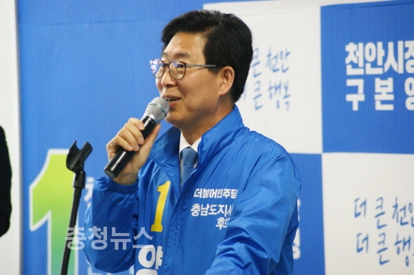 그러면서 “인구 100만 도시를 위한 신성장 동력을 위해 동남구청사 신속하게 완공하고 천안역사 제대로 번듯하게 지어 놓고, 역세권 도시재생 뉴딜사업 확실하게 추진하겠다”고 약속했다.