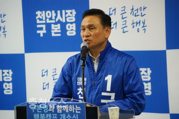 구본영 천안시장 후보는 13일 불당동 천안시청 맞은편에 선거사무소 개소식을 갖고 재선 도전에 나섰다.