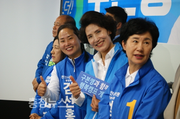구 후보는 핵심공약으로 △유니세프 아동친화도시 인증 및 천안형 여성친화도시를 구축 △초등교실을 활용한 돌봄센터운영 및 고등학교 무상급식과 대학생 학자금 대출이자 전액 지원을 약속했다.