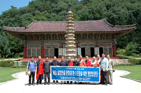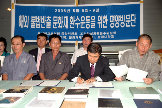 약탈 문화재 환수문제를 협의하기 위해 조선왕조의궤 환수위원회 (대표 김원웅)와 불교 조계종 중앙신도회 손안식 부회장, 인목스님 법상스님등 11명의 대표단이 조선불교도연맹(서기장 정서정)초청으로 8,5~9 동안 평양을 방문했다.