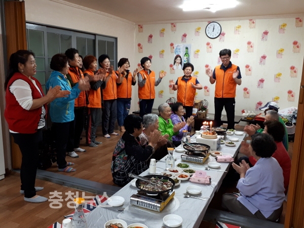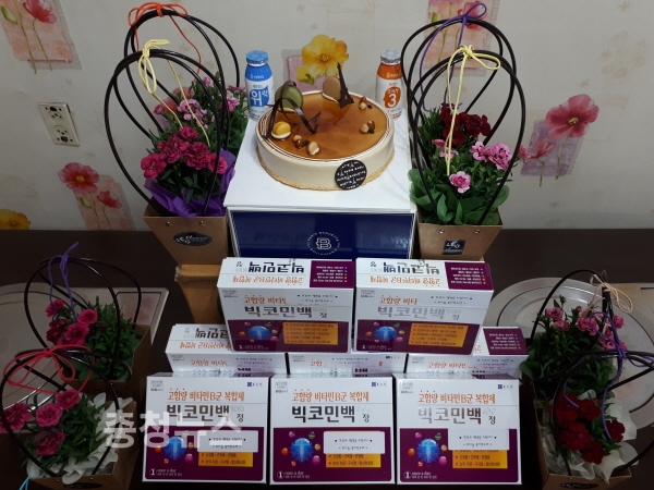 또한 카네이션 화분을 드리고, 건강보조식품도 챙겨드리며 어르신들의 건강을 기원했다. 참석한 한 노인은 “내 생일이 언제인지 기억조차 못하는데, 맛난 음식과 함께 생일을 같이 축하해주니 기쁠 따름”이라고 소감을 전했다.