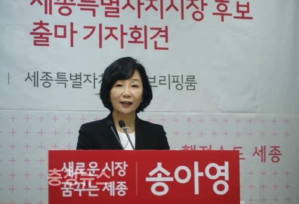 자유한국당 송아영 세종시장 예비후보는 15일 세종시청 브리핑룸에서 출마 기자회견을 갖고 "국가균형발전의 상징이자 새로운 국가 행정의 중심으로서 세종시를 반드시 명문화 해야 한다"고 밝혔다.