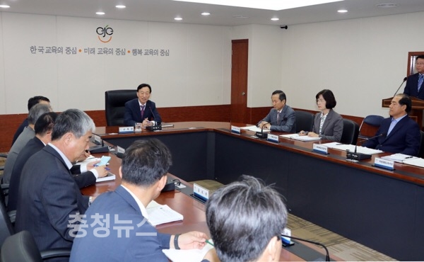 이날 회의는 이용균 부교육감, 김상규 교육국장, 장흥근 행정국장을 비롯한 교육청 간부들이 참석한 가운데 진행됐다.
