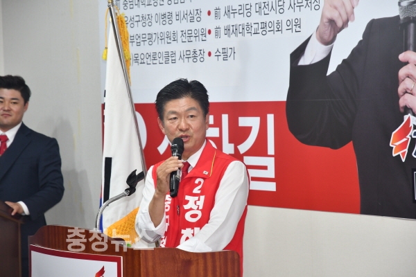 정하길 후보는 "저의 어깨에는 구청장이라는 개인적 영달을 떠나 중구의 미래가 얹혀져 있다"며 "갈수록 낙후돼 가고 있는 중구의 부흥을 일으켜야 할 사명을 받았다"고 굳건한 의지를 내비쳤다.