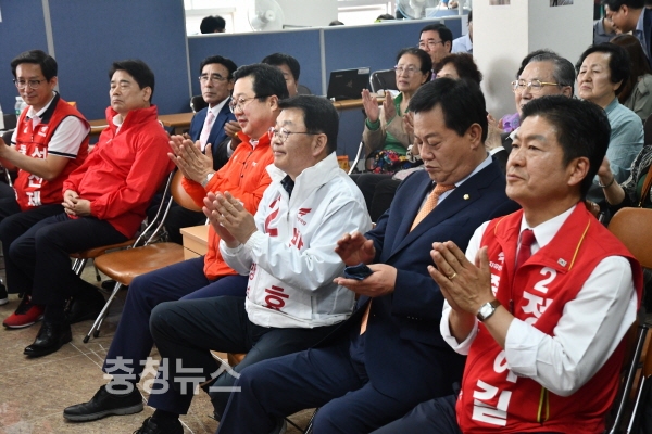 격려사에서 이장우 의원은 “낙후된 중구 발전을 위해 이은권 위원장과 정 후보가 함께 중구를 책임져야 한다”며 “대전 지역의 대표 원도심인 중구의 새로운 변화를 위해 정 후보에게 힘을 실어달라”고 지지를 호소했다.