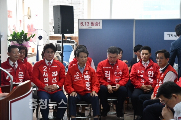 한편, 이날 행사에는 이은권 시당위원장, 이장우 국회의원, 양홍규(서구을)·육동일(유성을) 당협위원장, 이병령 전 유성구청장, 박성효 대전시장 후보, 성선제 동구청장 후보, 윤진근·김선광·박종호 중구시의원 후보, 우애자·황경아 시의원(비례) 후보, 김연수·박주화·이정수·김옥향·안형진·조재철·조은경(비례) 중구의원 후보 등 당원 및 지지자 300여 명이 참석했다.