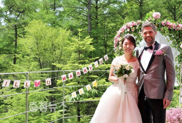산림청 한국산림복지진흥원(원장 윤영균)은 강원도 횡성군 둔내면 소재 국립횡성숲체원(원장 장관웅)에서 관계자 30여 명이 참석한 가운데 국외입양가정을 위한 ‘숲속 아름다운 결혼식’을 했다고 15일 밝혔다.