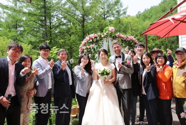 국내 첫 숲체원(산림교육 전문시설)인 국립횡성숲체원에서 숲속 아름다운 결혼식이 열렸다.