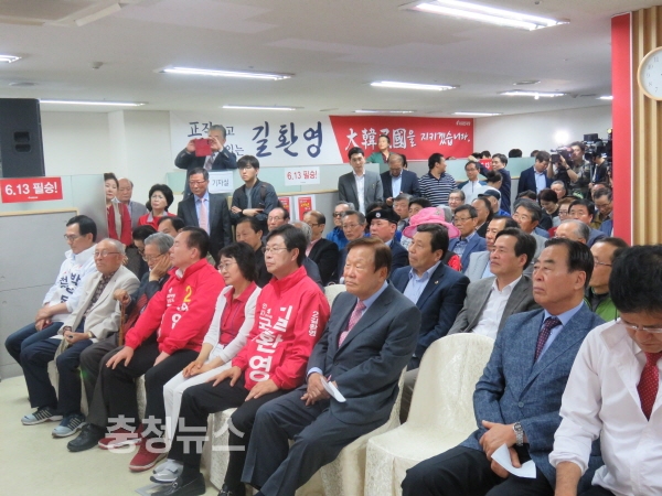 먼저 홍문표 사무총장은 축사를 통해 "문재인 정부는 정권을 잡자마자 언론을 탄압했다. 이에 대부분의 언론이 정권의 입맛에 맞춰졌다"며 "길 후보를 국회로 보내 대한민국 언론탄압을 막아야 한다"고 말했다.