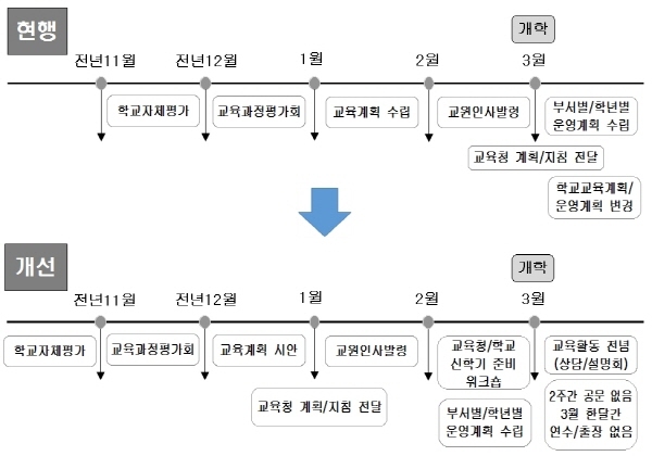 교원들의 행정업무를 경감하고 지원함으로써 3월 뿐만 아니라, 교원이 학년도 중 상시 수업과 상담 등 교육활동에 전념할 수 있는 학교분위기를 만들기 위해 노력할 것"이라고 강조했다.