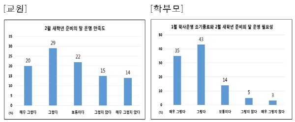 그럼에도 금년에 처음 시행한 정책인 만큼 1월 학사 운영이나 2월 새학년 준비기간 동안 교원의 피로감이 가중되는 면이 있었다고 응답했다.